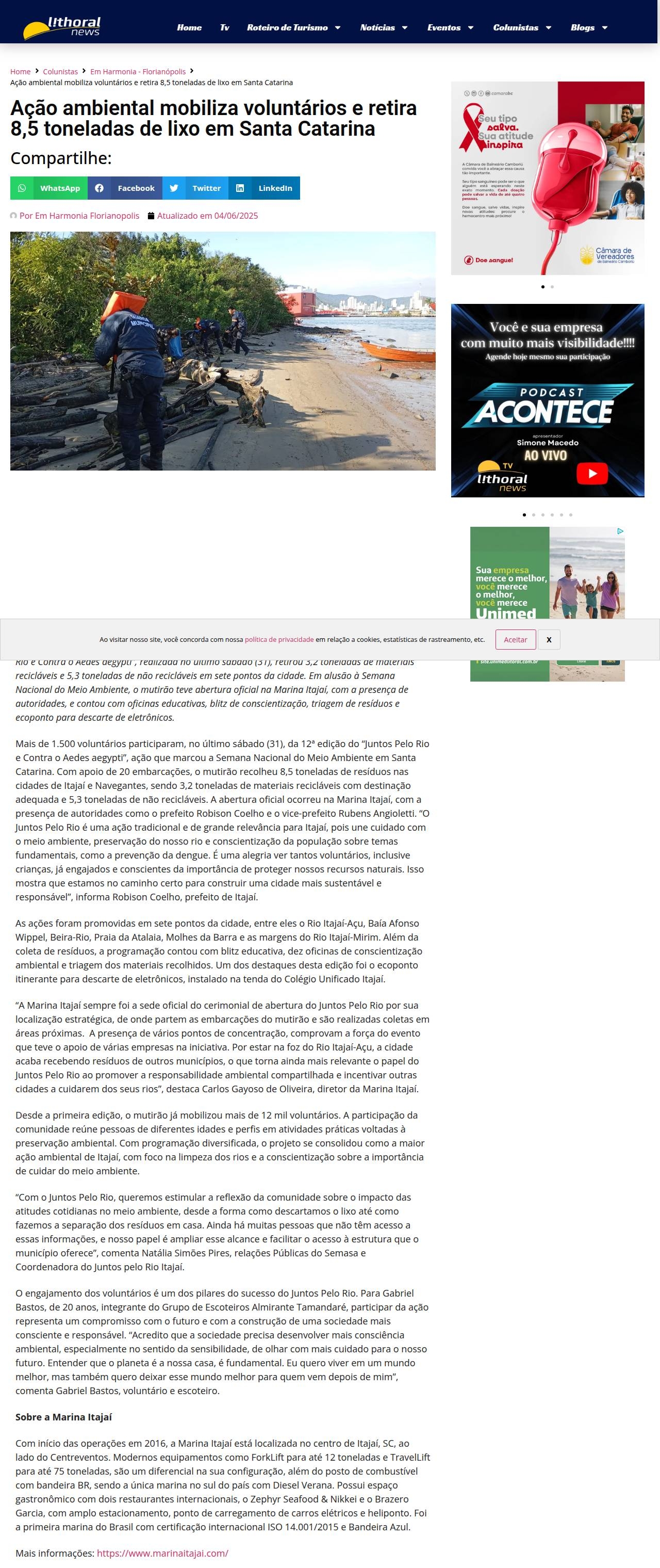 https://lithoralnews.com.br/acao-ambiental-mobiliza-voluntarios-e-retira-85-toneladas-de-lixo-em-santa-catarina