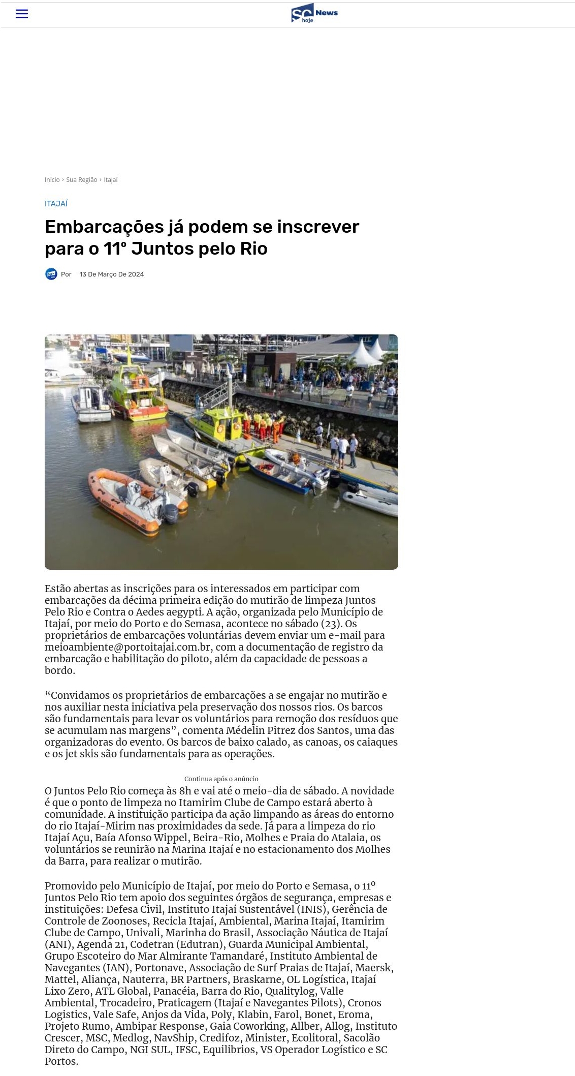Embarcações já podem se inscrever para o 11º Juntos pelo Rio | SC Hoje News