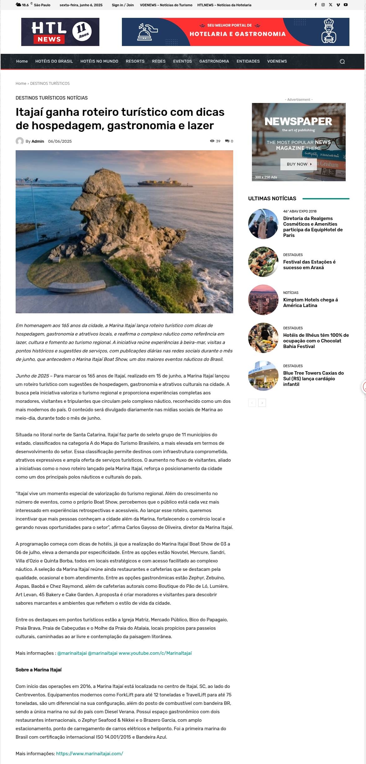 Itajaí ganha roteiro turístico com dicas de hospedagem, gastronomia e lazer HTLNEWS - Notícias da Hotelaria e Gastronomia
