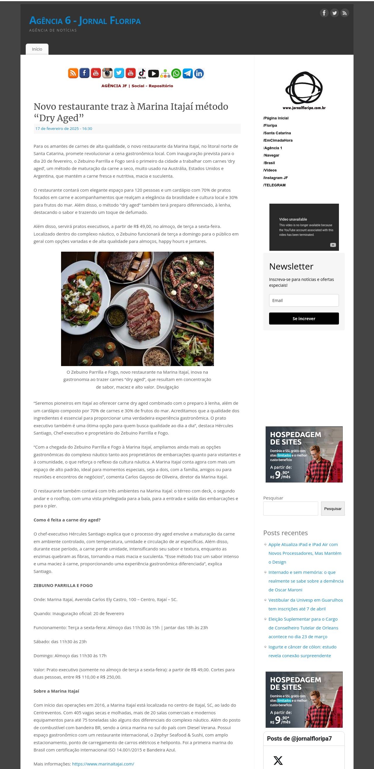 Novo restaurante traz à Marina Itajaí método "Dry Aged"