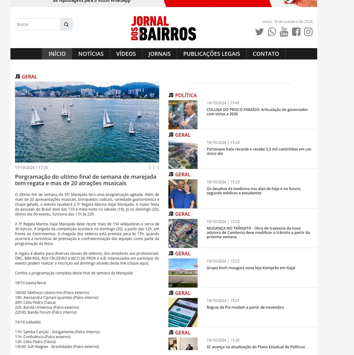 17/10/2024 - Jornal dos Bairros Itajaí