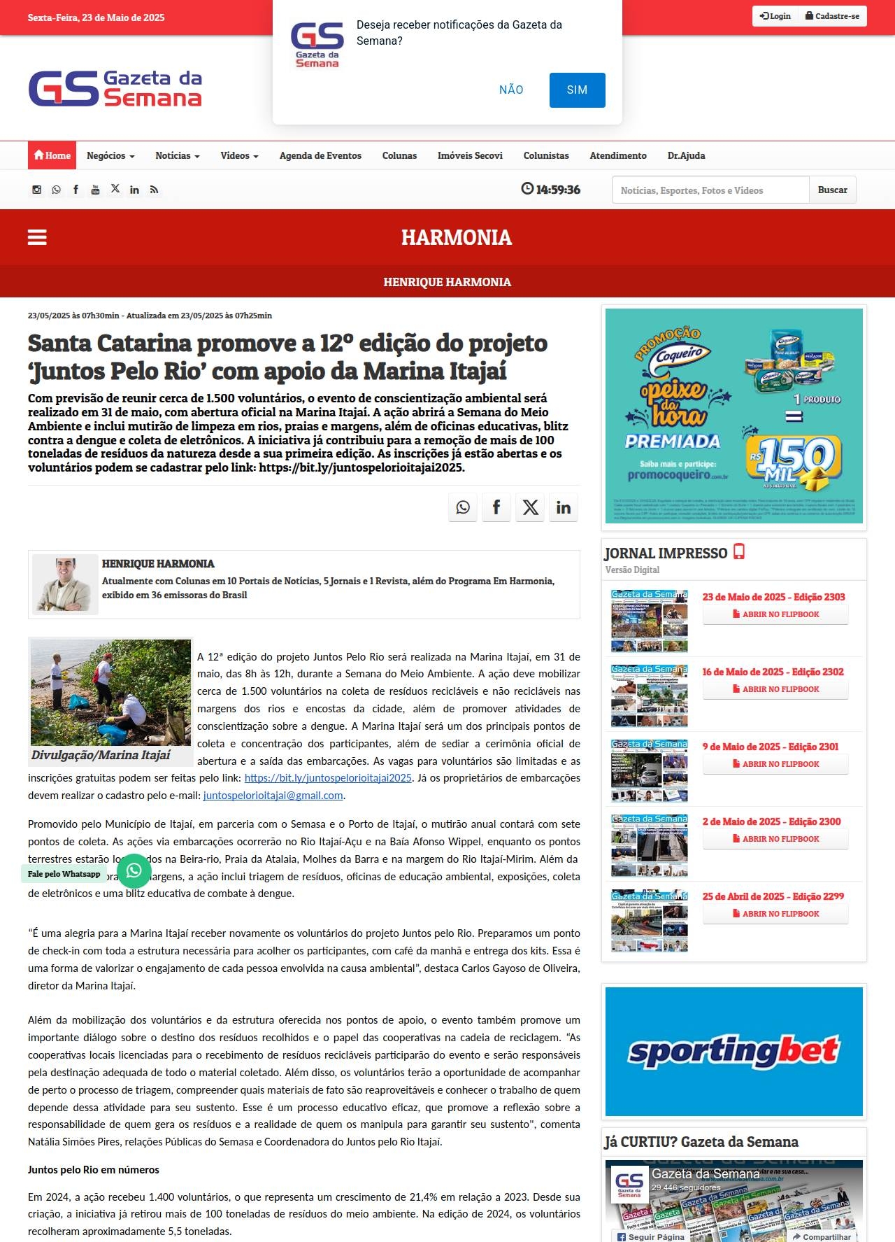 https://gazetadasemana.com.br/coluna/13904/santa-catarina-promove-a-12-edicao-do-projeto-juntos-pelo-rio-com-apoio-da-marina-itajai