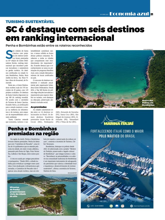 Turismo,Marlene de Sena.DIVULGAÇÃO/PMPMARINA ITAJAÍFORTALECENDO ITAJAÍ COMO O MAIORPOLO